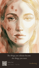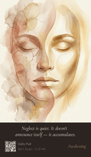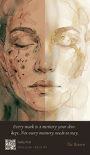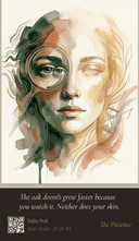 Not a skincare product. A daily practice that blends inspiration, mindfulness, reflection, education, rituals, and real research — in a format you can hold in your hands. Pull one card each morning. Read the principle. Scan the QR code for the full guide. In five minutes, you'll understand your skin better than a year of guessing ever taught you.