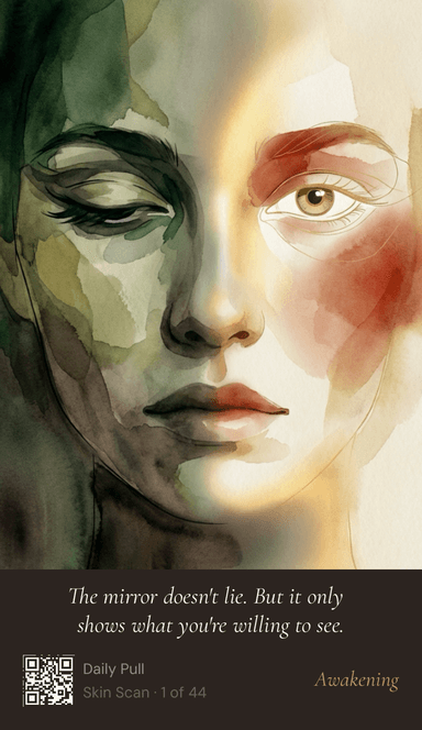 A card deck sits on your nightstand. You touch it every morning. The shuffle is tactile. The pull is random — you can't skip ahead or swipe past. The message you get is the one you needed, whether you knew it or not.